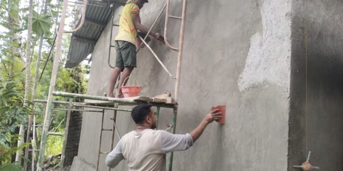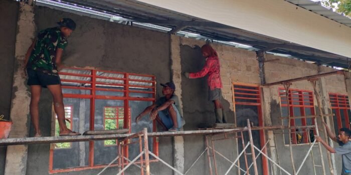 Kefamenanu, NTT – Suasana semangat kerja terpancar di Desa Sunkaen ketika Satgas TMMD Ke-127 dari Kodim 1618/TTU melanjutkan proyek plester dinding luar empat Ruang Kegiatan Belajar (RKB) pada hari Jumat,