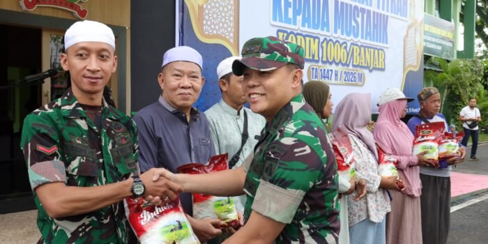 Martapura – Kodim 1006/Banjar melaksanakan penyaluran zakat fitrah Tahun 1447 H/2026 M kepada masyarakat yang berhak menerima (mustahik), bertempat di Makodim 1006/Banjar, Jalan A. Yani Km 39, Kelurahan Jawa, Kecamatan