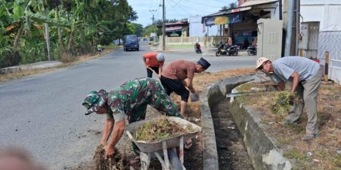 Nagan Raya – Bintara Pembina Desa ( Babinsa ) Posramil Kuala Pesisir Kodim 0116/Nara Serka Sunanto melaksanakan kegiatan Kerja Bhakti gotong-royong bersama warga di Desa Purwodadi Kecamatan Kuala Pesisir Kabupaten