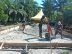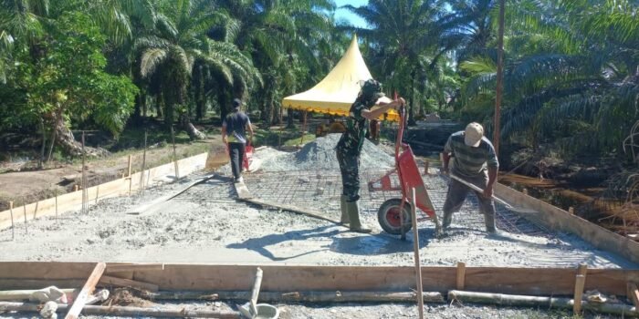 Nagan Raya – TNI terus melaksanakan Pengecoran Lantai yang sebelumnya di pasang dengan menggunakan besi yang sudah di rangkai agar lebih kuat yang di bawahnya telah di lakukan Pemasangan Jembatan Aramco
