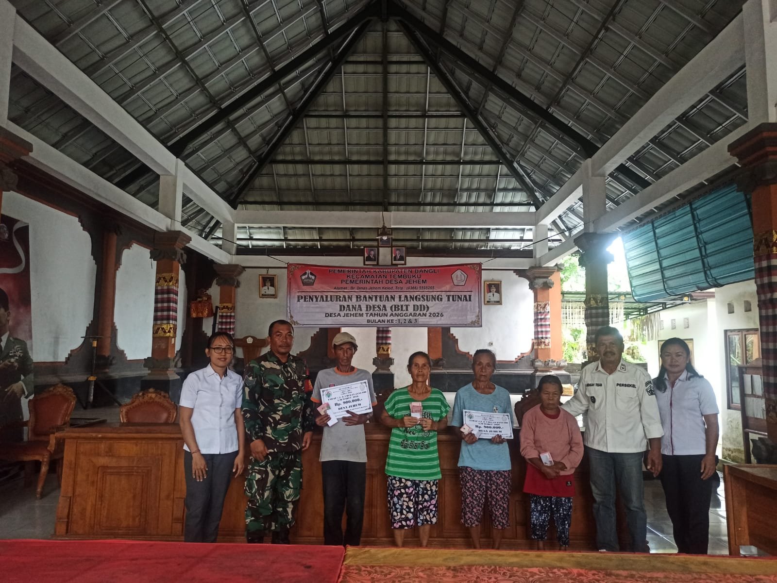 Bangli – Pada tanggal 24 April 2026, Babinsa Desa Jehem, Sertu Kadek Muliana, melakukan pendampingan dalam penyaluran Bantuan Langsung Tunai Dana Desa (BLT-DD) untuk tahapan I, II, dan III. Kegiatan ini berlangsung di Balai Pertemuan Kantor Perbekel Desa Jehem, yang terletak di Kecamatan Tembuku, Kabupaten Bangli.