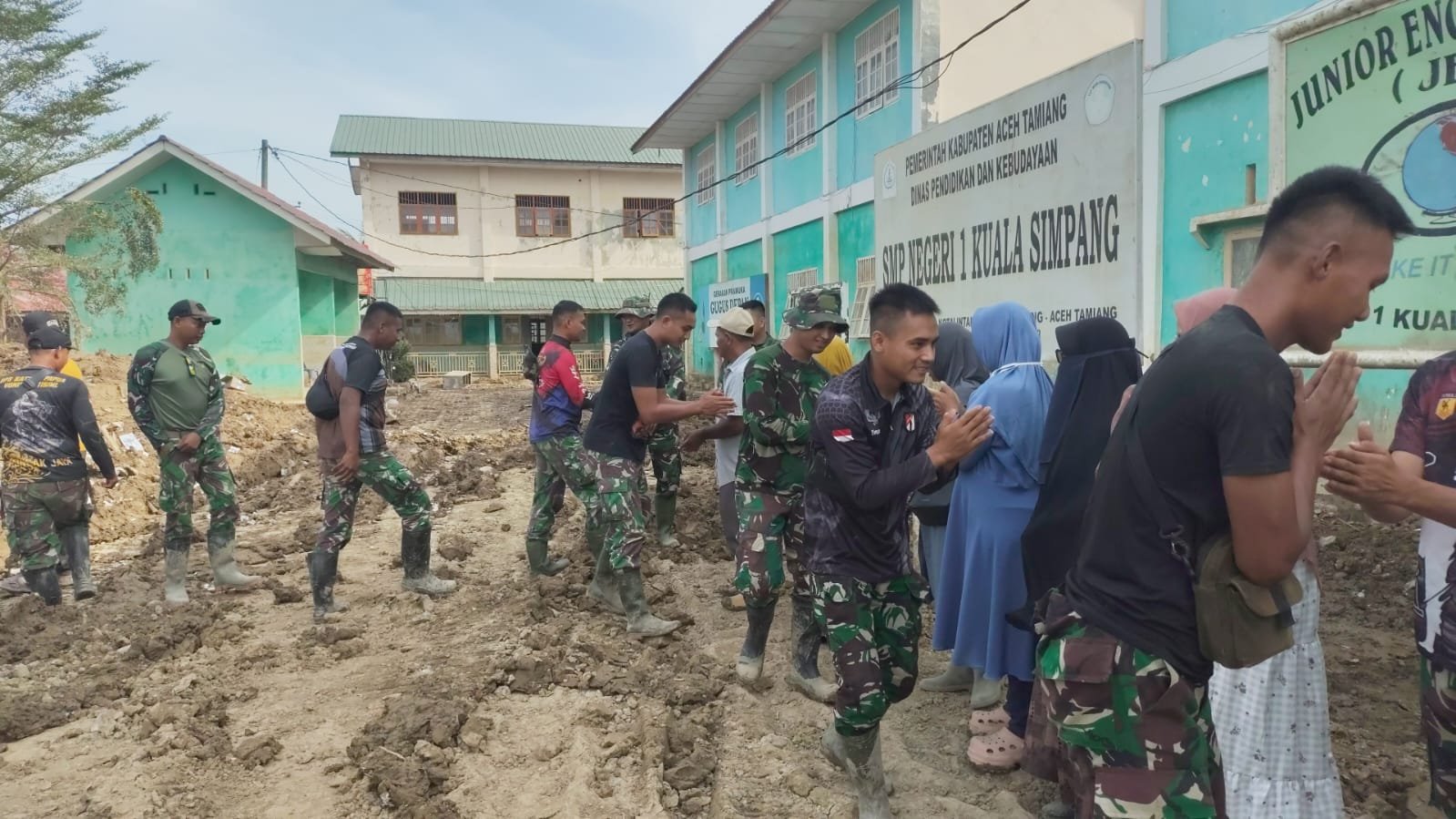 Supaiah, seorang guru di SD Negeri 04 Kuala Simpang, membagikan rasa syukurnya, mengungkapkan betapa kehadiran TNI tidak hanya memberikan bantuan fisik, tetapi juga menanamkan rasa aman dan semangat kepada anak-anak. “Kehadiran mereka sangat berarti, mereka memberi kami harapan di saat-saat sulit,” katanya penuh emosi.