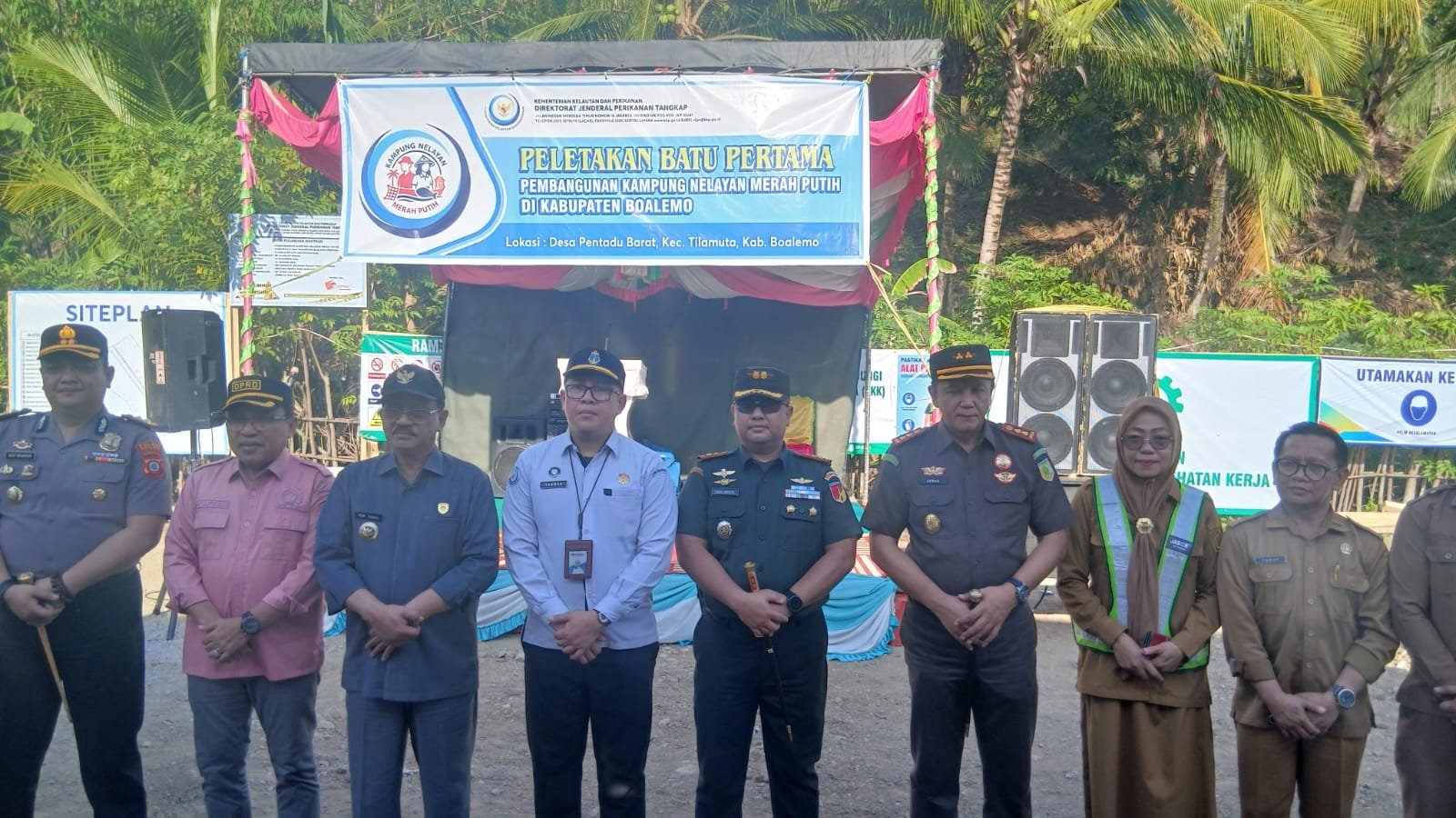 Acara yang dimulai pada pukul 15.21 WITA ini dihadiri secara lengkap oleh unsur Forum Koordinasi Pimpinan Daerah (Forkopimda) Kabupaten Boalemo, para pimpinan Organisasi Perangkat Daerah (OPD), perangkat desa, serta masyarakat setempat. Kehadiran para pemangku kepentingan tersebut mencerminkan dukungan penuh terhadap percepatan pembangunan dan kesejahteraan masyarakat pesisir di Kabupaten Boalemo.