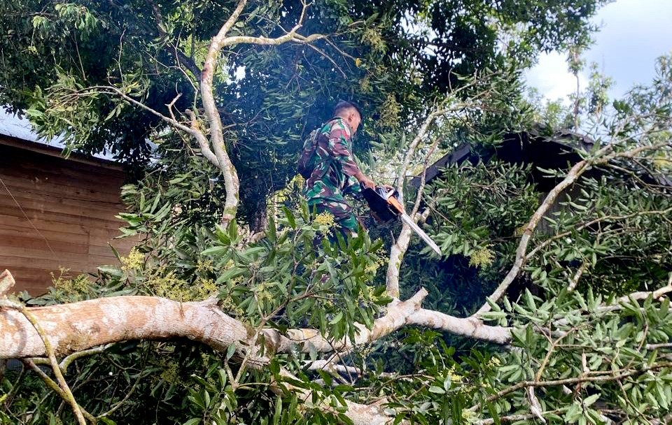 Setelah menerima informasi dari masyarakat binaan, Praka Karno langsung menuju lokasi kejadian dan bersama masyarakat melakukan pembersihan evakuasi material pohon tumbang menggunakan alat seadanya seperti parang dan gergaji mesin. Kegiatan ini merupakan salah satu contoh kepedulian Babinsa terhadap masyarakat binaan dan lingkungan sekitar.