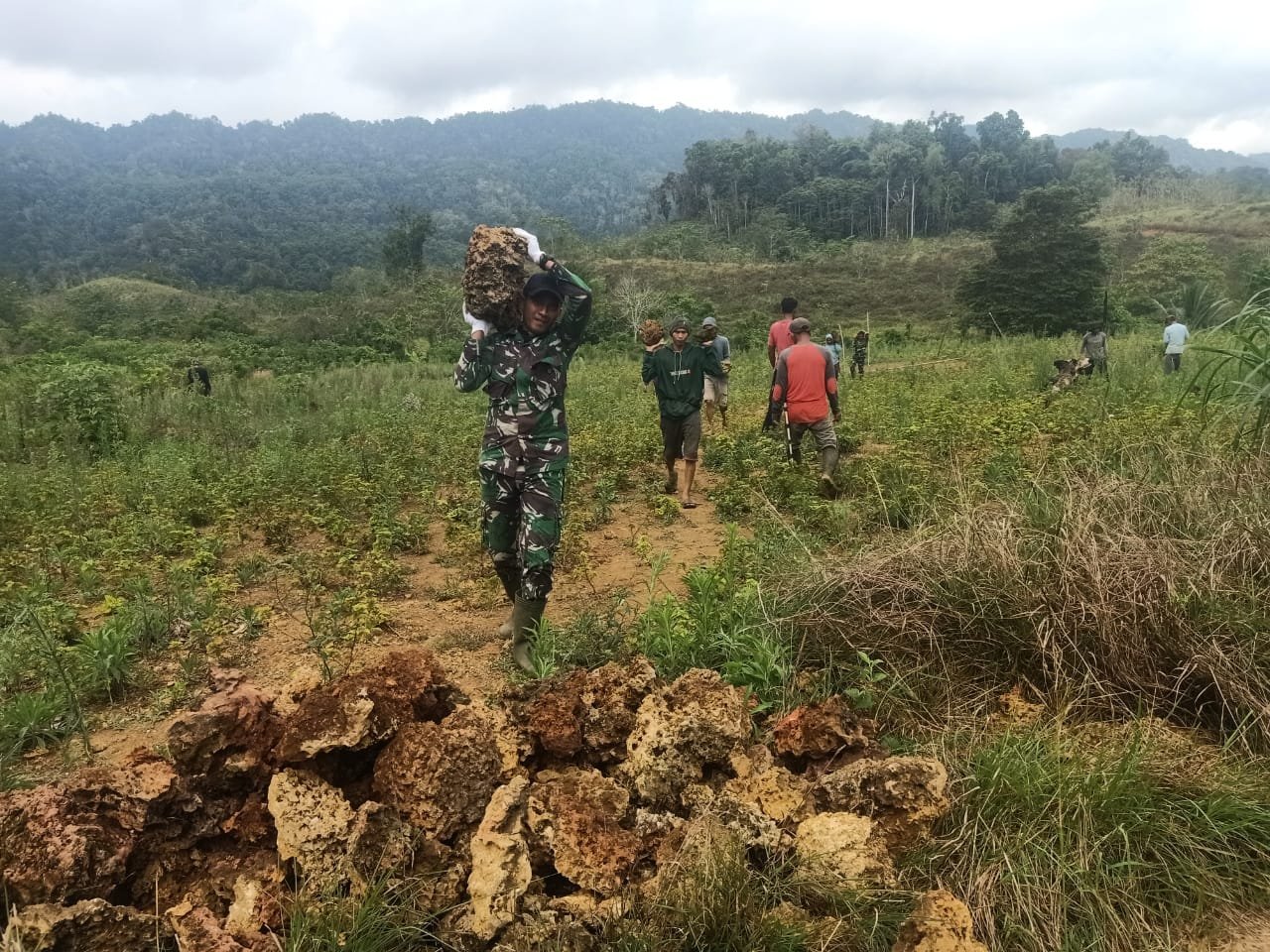 Kolaka Timur, 16 Oktober 2025 – Semangat kebersamaan antara TNI dan masyarakat kembali terlihat dalam kegiatan TNI Manunggal Membangun Desa (TMMD) ke-126 Kodim 1412/Kolaka. Kali ini, anggota Satgas TMMD bersama warga Desa Tonggauna, Kecamatan Ueesi, bahu-membahu mencari batu untuk mendukung pembangunan deker ke-6, salah satu sasaran fisik program TMMD di wilayah tersebut.