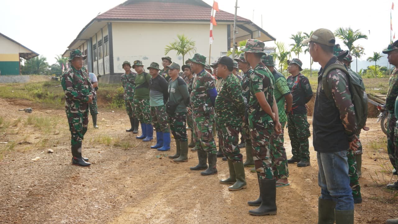 Kotawaringin Timur – Satuan Tugas (Satgas) TNI Manunggal Membangun Desa (TMMD) Reguler ke-127 Kodim 1015/Sampit melaksanakan apel pagi sebagai langkah pengecekan kesiapan personel di Desa Tribuana, Kecamatan Telaga Antang, Kabupaten Kotawaringin Timur, pada Rabu (11/02/2026).