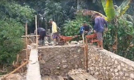Jembatan baru ini dibangun untuk menggantikan jembatan kayu lama yang kondisinya sudah lapuk dan sangat membahayakan keselamatan warga yang melintas setiap hari. Pantauan di lapangan menunjukkan antusiasme tinggi dari masyarakat yang terlibat langsung dalam proses pembangunan.
