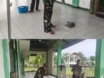 ACEH BARAT – Mengisi bulan suci Ramadan dengan kegiatan positif, Babinsa Koramil 04/Mrb Kodim 0105/Aceh Barat, Serka Sunarto Lubis, mengajak warga melaksanakan gotong royong membersihkan musholla di Desa Peunaga Pasi,