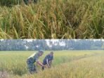 Babinsa Woyla Barat Turun ke Sawah, Pastikan Padi Menguning Milik Warga Siap Panen