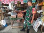 ACEH BARAT – Babinsa Koramil 02/Woyla Kodim 0105/Abar, Serda Ridwan Anai, memantau harga daging pada saat tradisi hari Meugang di Desa Pajak Kuqla Bhee, Kecamatan Woyla, Kabupaten Aceh Barat, Selasa