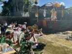 Penguatan Hubungan Sosial, Babinsa Tembuku Ikuti Piodalan Purnama Kedasa