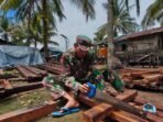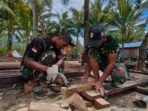 Proses Pemotongan Kayu Memastikan Kualitas RTLH oleh Satgas TMMD