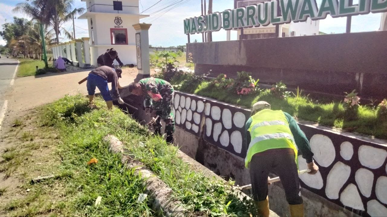 SIDRAP – Personel Babinsa dari Desa Ciro-Ciroe, Koramil 1420-04/Watang Pulu, Pelda Andi Akbar, melaksanakan kegiatan pembersihan saluran air di sekitar Masjid Birrul Walidain, yang terletak di Dusun II Mattiro, Desa Ciro-Ciroe, Kecamatan Watang Pulu, Kabupaten Sidrap pada Kamis (12/03/2026). Kegiatan karya bakti ini menjadi wujud nyata kemanunggalan antara TNI dan masyarakat, dengan fokus utama pada pengangkatan sampah serta sedimen tanah yang menghalangi aliran drainase di area masjid.