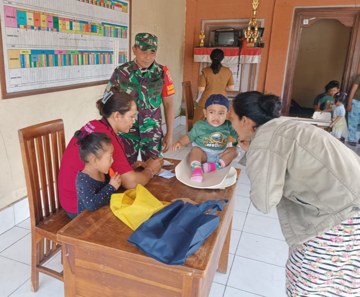 Bangli – Dalam rangka mendukung program pemerintah terkait kesehatan masyarakat, Pelda Kadek Widiarta dari Babinsa Desa Bangbang, Koramil 1626-03/Tembuku, Kodim 1626/Bangli, melaksanakan pendampingan dan pemantauan kegiatan Posyandu Balita yang diadakan di Balai Banjar Dinas Bangbang Kangin, Desa Bangbang, Kecamatan Tembuku, Kabupaten Bangli pada Selasa (03/02/2026).