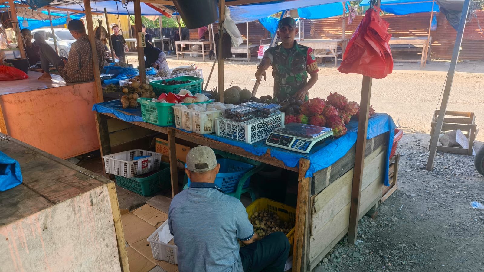 Babinsa Jaya Pastikan Permintaan Konsumen Terpenuhi di Pasar Lamno
