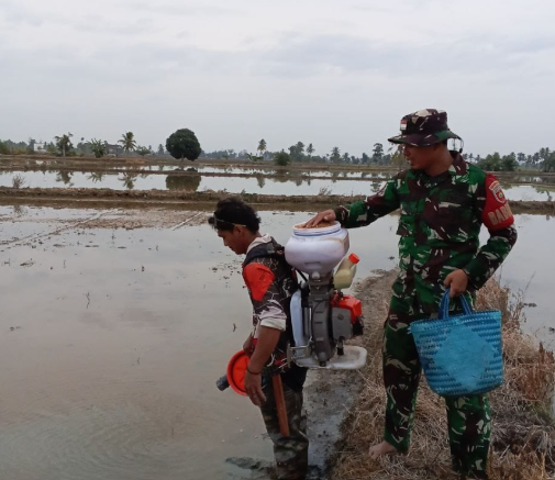 Dalam acara tersebut, Kopda Haslan tidak hanya memantau proses penaburan benih, tetapi juga memberikan dukungan kepada petani lokal, khususnya Bapak Sainal, yang memiliki lahan persawahan di lokasi tersebut. Pendampingan yang dilakukan Babinsa bertujuan untuk meningkatkan produktivitas pertanian dan mendorong para petani agar lebih optimis dalam mengelola lahan mereka.