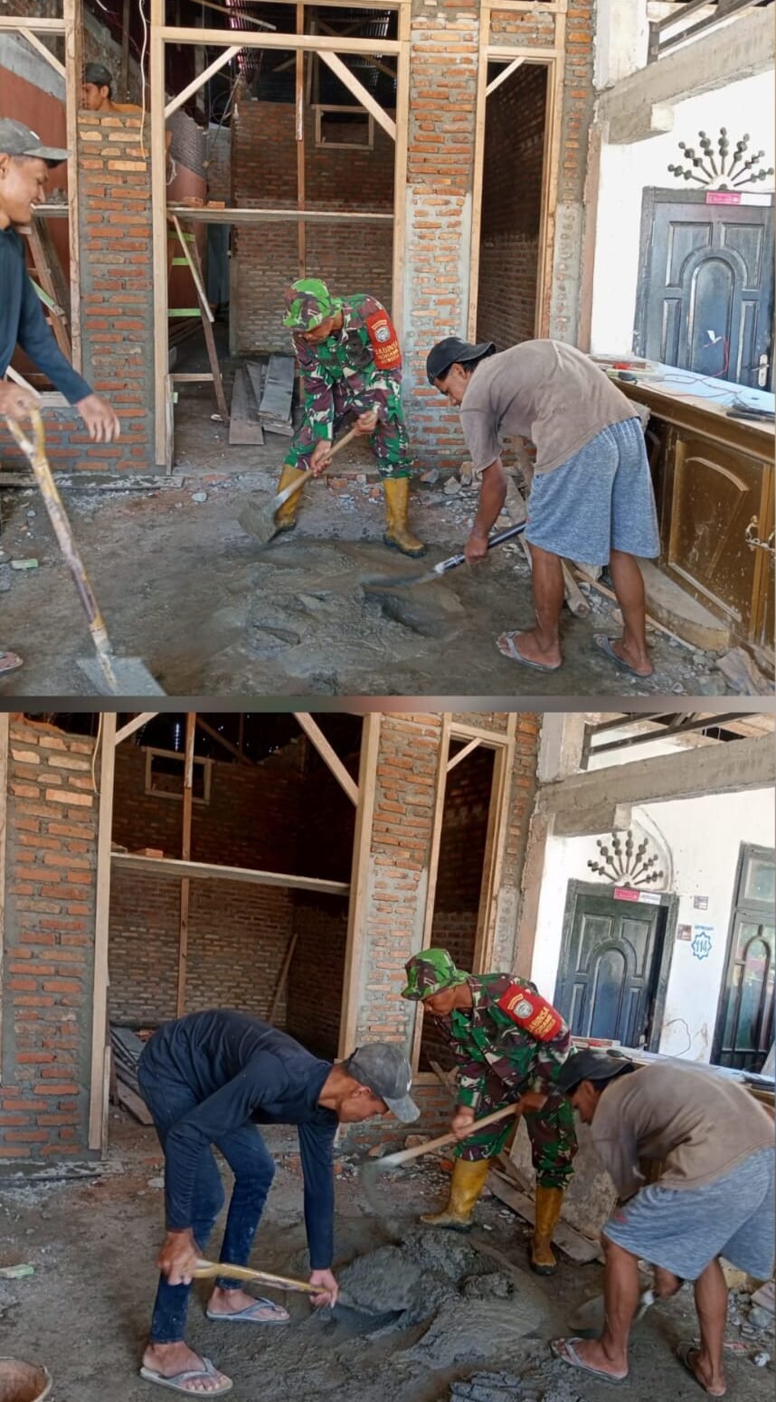 ACEH BARAT — Babinsa Koramil 02/Woyla Kodim 0105/Abar, Serda Gino, melaksanakan kerja bakti membantu pembangunan rumah masyarakat desa binaan di Desa Rantau Panyang, Kecamatan Woyla, Kabupaten Aceh Barat, Senin (09/02/2026).