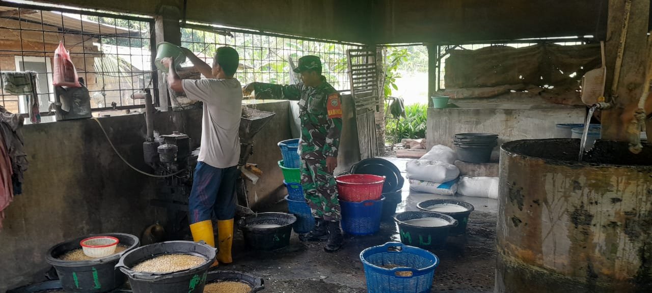 Dalam kegiatan tersebut, Babinsa mengunjungi langsung tempat produksi tempe dan tahu milik warga di wilayah binaannya. Kunjungan tersebut dimanfaatkan untuk berdialog dengan para pelaku usaha sekaligus memantau kondisi proses pengolahan makanan yang menjadi salah satu sumber penghasilan masyarakat setempat.