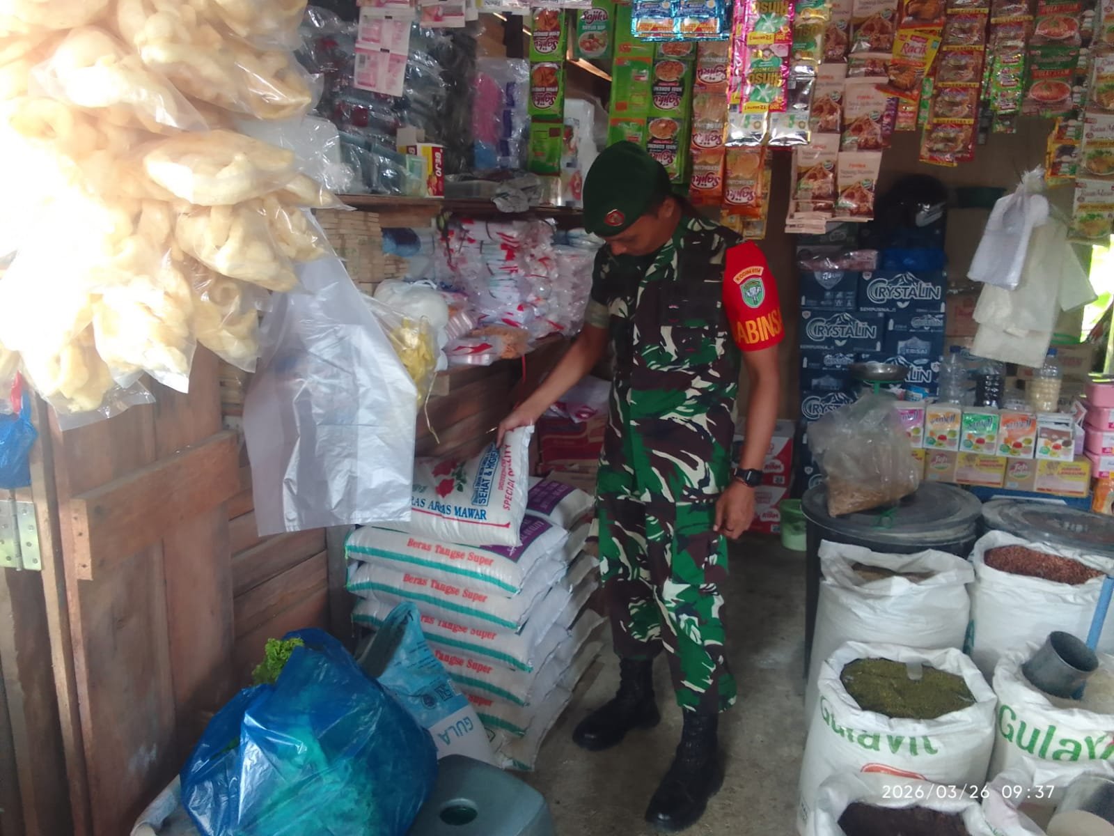 ACEH JAYA – Untuk memastikan stabilitas harga kebutuhan pokok di wilayah binaan, personel Koramil 05/Panga Kodim 0114/Aceh Jaya melaksanakan kegiatan pengecekan harga sembako di pasar yang berada di Kecamatan Panga, Kamis (26/3/2026).