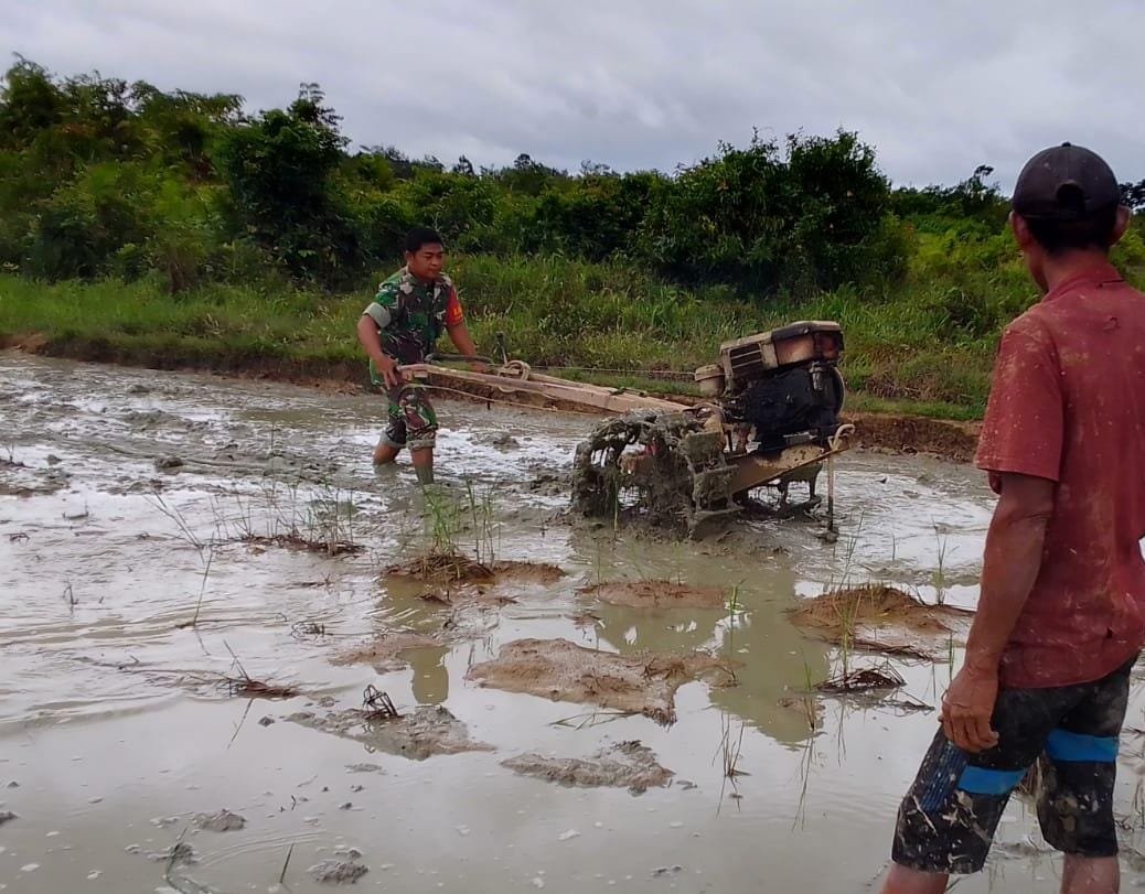 Babinsa Koramil 08 Arongan Lambalek Bantu Warga Membajak Sawah di Desa Binaan