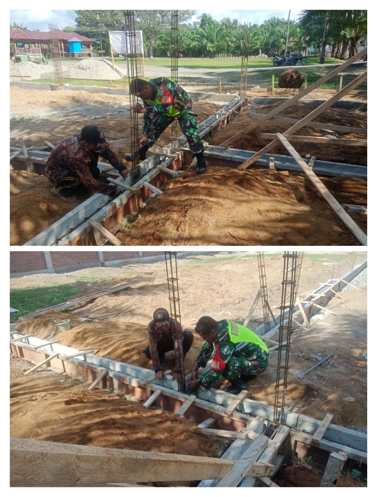 ACEH BARAT — Babinsa Koramil 08/Arongan Lambalek Kodim 0105/Aceh Barat, Koptu Riansyah, melaksanakan kegiatan karya bakti dengan membantu warga memasang besi cor guna mempercepat pembangunan pondasi rumah warga di Desa Suak Kemudai, Kecamatan Arongan Lambalek, Kabupaten Aceh Barat, Kamis (08/01/2026).