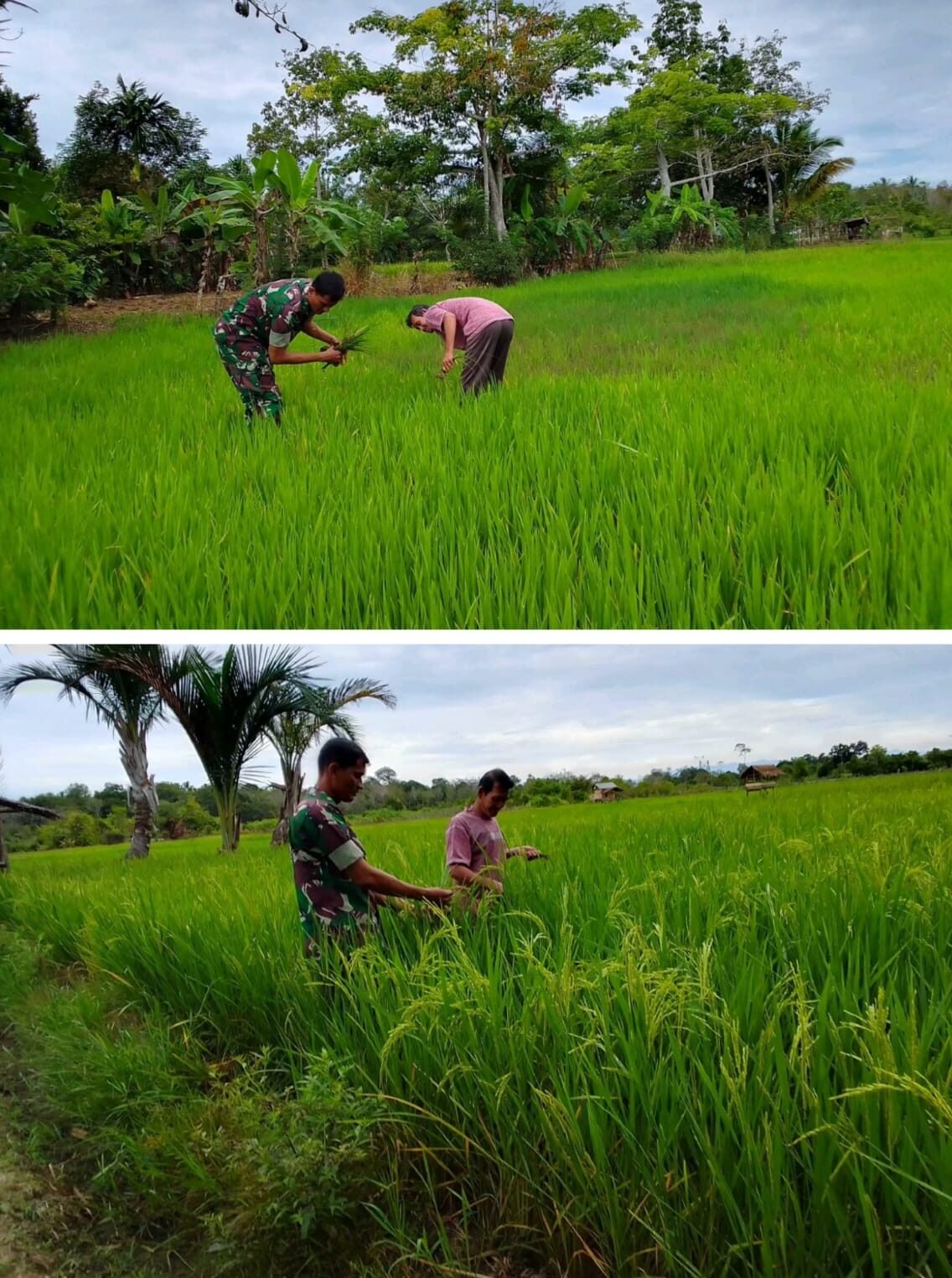 Selain melakukan penyiangan, Babinsa juga berdialog dengan para petani terkait kondisi tanaman serta kendala yang dihadapi di lapangan, seperti serangan hama maupun kebutuhan pupuk. Pendampingan ini menjadi bentuk nyata kepedulian TNI terhadap sektor pertanian sebagai salah satu penopang perekonomian masyarakat desa.