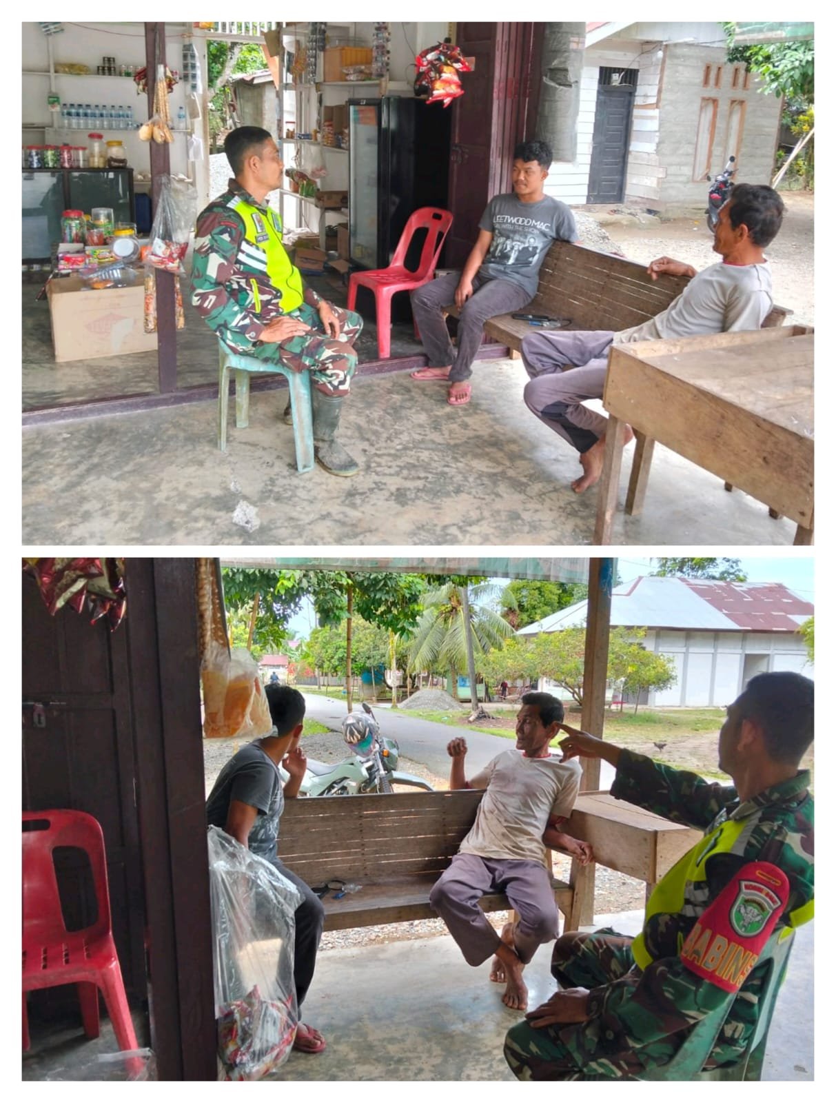 Kegiatan komsos ini bertujuan untuk menjalin kedekatan antara Babinsa dan masyarakat serta menggali informasi terkait kondisi sosial, keamanan, dan situasi lingkungan desa. Dalam kesempatan tersebut, Serda Feri Irawan mengajak warga untuk terus menjaga kerukunan, keamanan, dan ketertiban di lingkungan masing-masing.