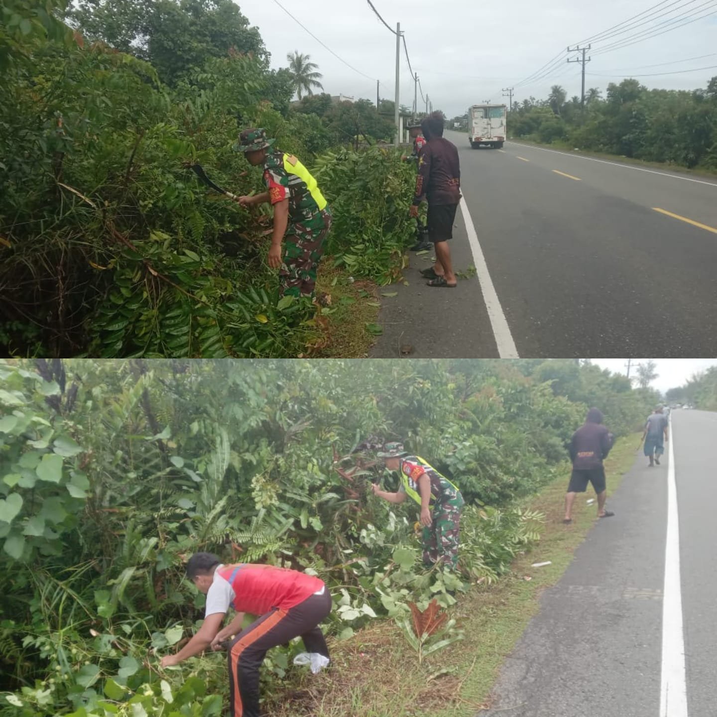Kegiatan ini merupakan bentuk nyata sinergi antara TNI dan masyarakat dalam menjaga fasilitas umum serta memperkuat semangat kebersamaan. Pembersihan dilakukan secara menyeluruh dengan memotong rumput liar, membersihkan semak belukar, serta mengangkut sampah yang mengganggu pemandangan dan estetika lingkungan sekitar jalan.