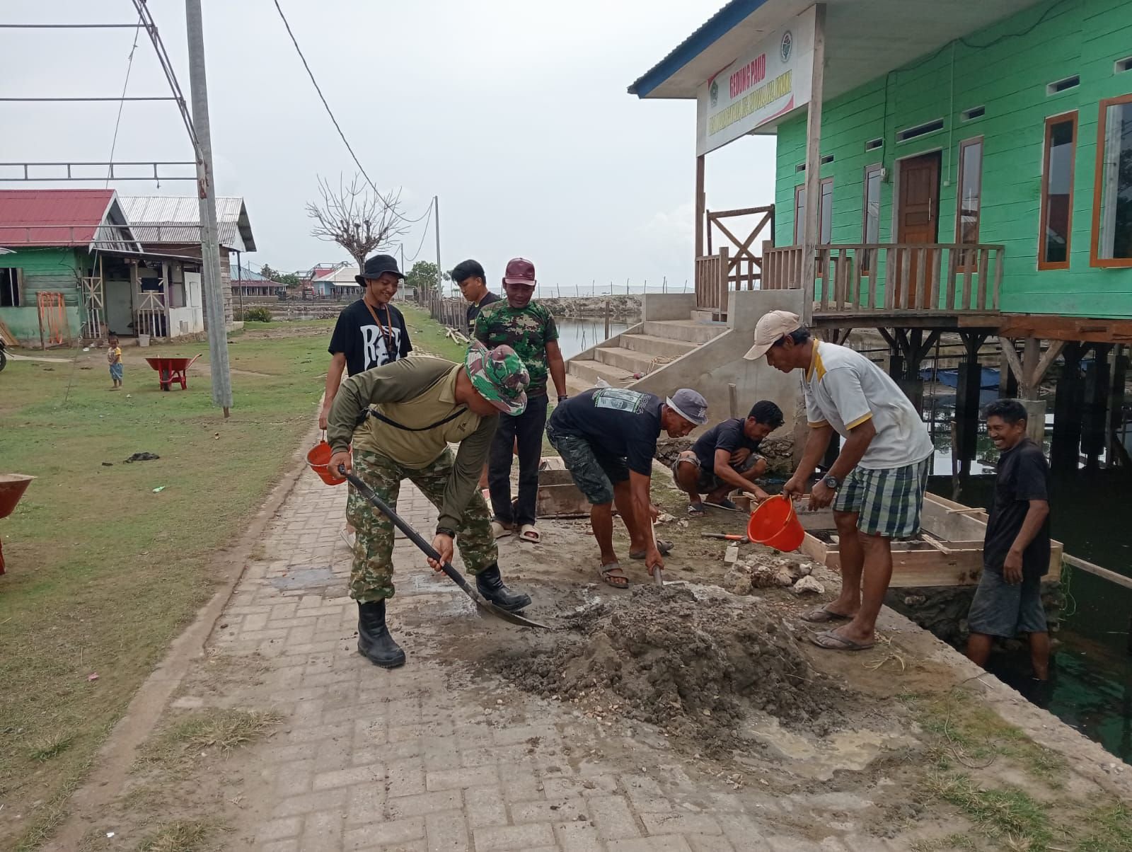 Babinsa Koramil 1417-07/Sampara Bersama Warga Bangun Tempat Sampah di Muara Sampara