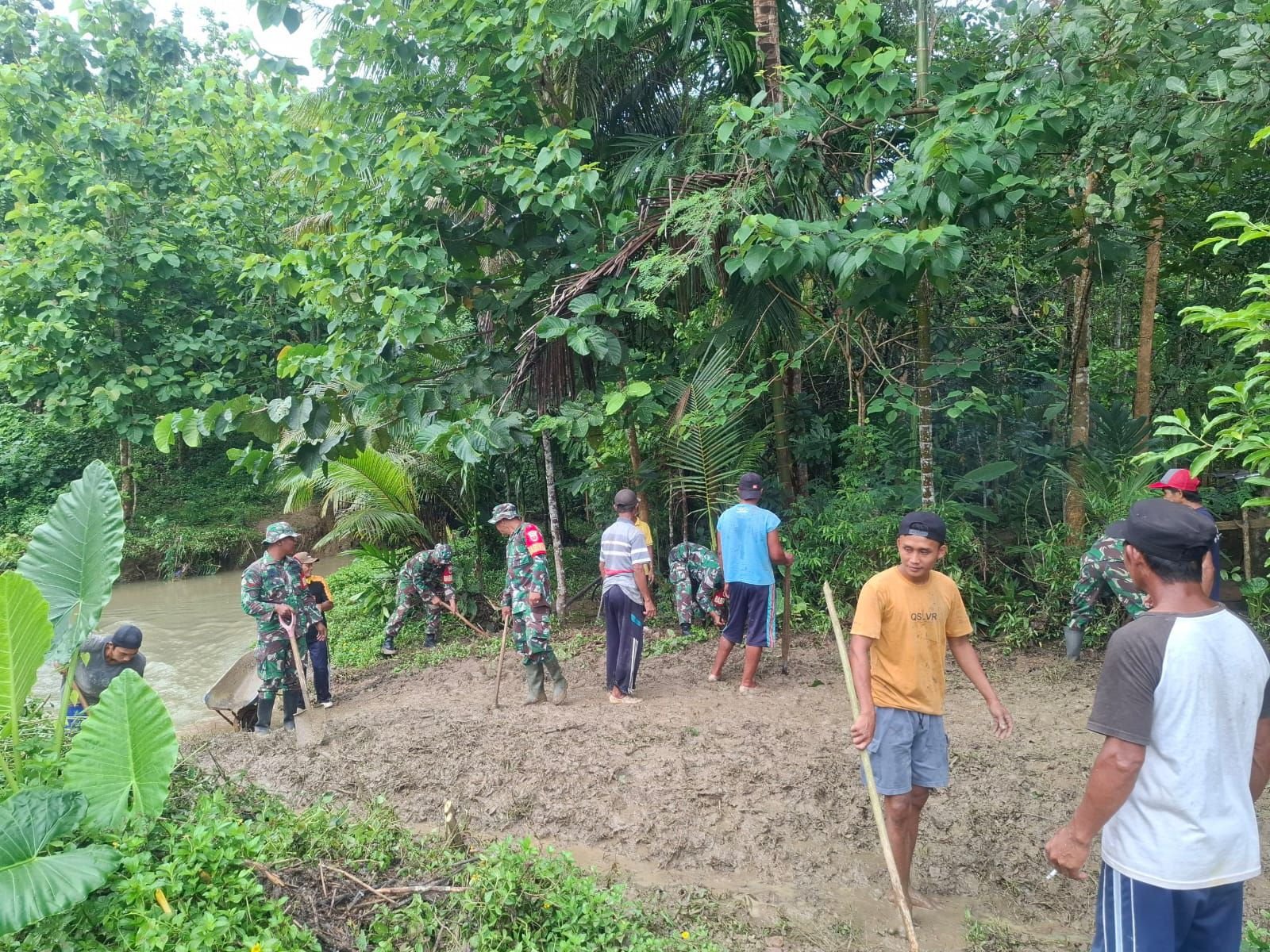 Konsel – Anggota Babinsa dari Koramil 1417-10/Moramo Kodim 1417/Kendari menunjukkan kepedulian mereka terhadap lingkungan melalui kegiatan Karya Bakti pembersihan drainase yang dilaksanakan di Desa Wonua Jaya, Kecamatan Moramo, Kabupaten Konawe Selatan pada Selasa, 10 Februari.