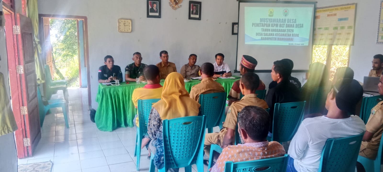 REOK – Dalam rangka menjamin transparansi dan akuntabilitas pembangunan desa, Sertu Safrudin yang merupakan Babinsa Koramil 1612-02/Reok, mengikuti Rapat Penetapan Anggaran Pendapatan dan Belanja Desa (APBDes) Salama untuk Tahun Anggaran 2026. Acara tersebut berlangsung dengan khidmat di Aula Kantor Desa Salama pada Selasa, 31 Maret 2026.