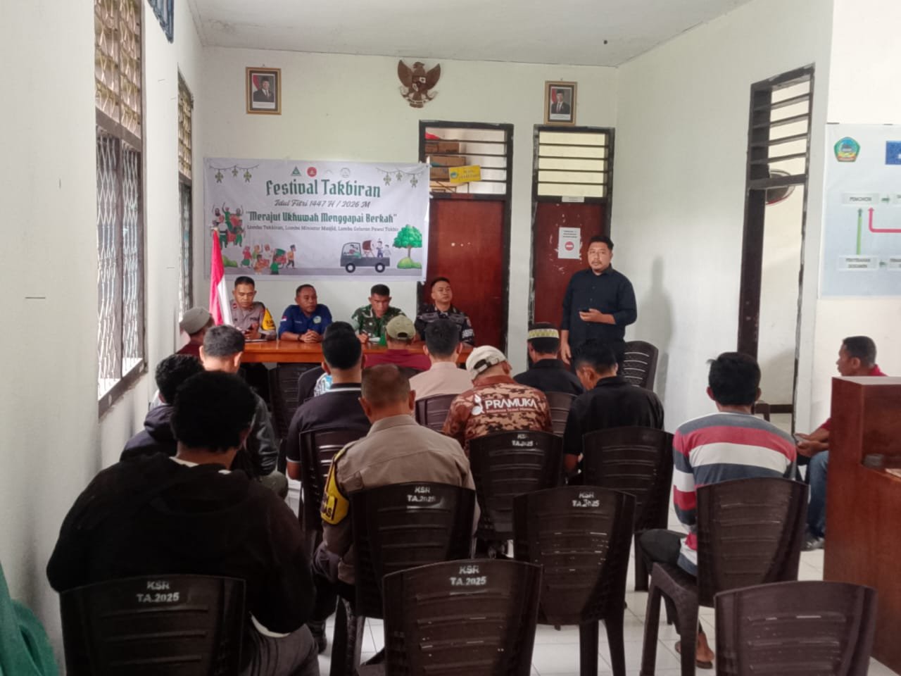 Serka A. Malik menyampaikan komitmen TNI melalui Koramil untuk mendukung dan membantu pengamanan kegiatan masyarakat, khususnya dalam momen keagamaan seperti malam takbiran. “Rapat ini memberikan kesempatan untuk menyatukan persepsi dan koordinasi sehingga pawai takbir dapat berjalan dengan aman, tertib, dan lancar. Kami siap bersinergi dengan pemerintah kecamatan, kepolisian, dan semua elemen masyarakat demi menciptakan situasi yang kondusif,” ujar Serka Malik.