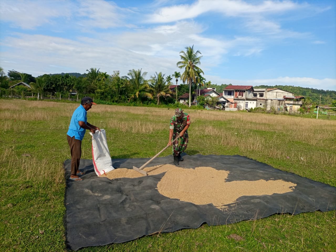 Kegiatan tersebut merupakan bentuk kepedulian Babinsa terhadap masyarakat di wilayah binaannya. Padi yang dijemur merupakan hasil panen yang akan digiling menjadi beras untuk memenuhi kebutuhan konsumsi sehari-hari keluarga warga setempat.