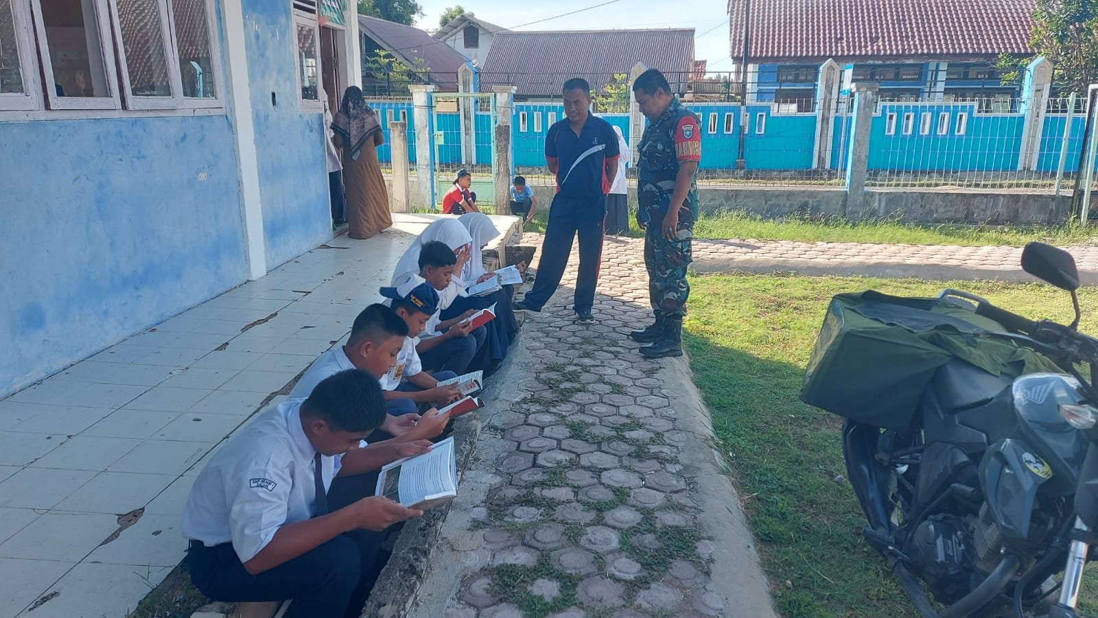 ACEH JAYA – Babinsa Koramil 04/Krueng Sabee Kodim 0114/Aceh Jaya, Serda Masrianto melaksanakan kegiatan motor pintar dalam rangka meningkatkan Sumber Daya Manusia (SDM) para siswa-siswi di Sekolah SMP N 1 Calang Desa Gampong Blang, Kecamatan Krueng Sabee, Kabupaten Aceh Jaya, Senin (04/11/2024).