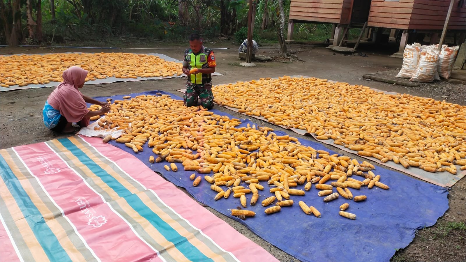 Pendampingan tersebut dilakukan sebagai bentuk kepedulian aparat teritorial terhadap kesulitan dan kebutuhan masyarakat binaan, khususnya para petani. Proses penjemuran jagung menjadi tahapan penting untuk menjaga kualitas hasil panen sebelum diproses lebih lanjut.