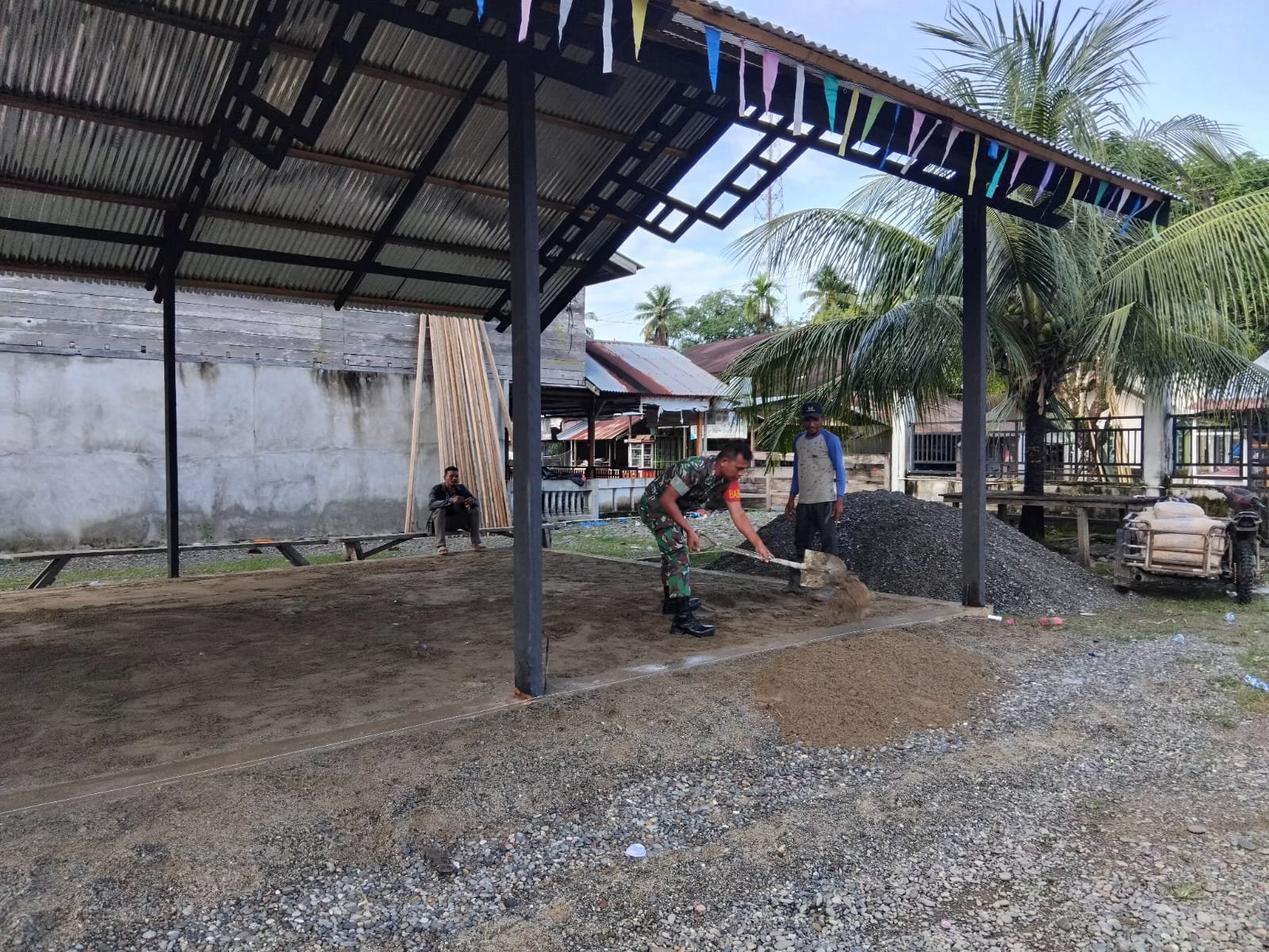 Kegiatan penimbunan tersebut dilakukan sebagai tahap awal pembangunan fasilitas parkir yang nantinya akan dimanfaatkan oleh masyarakat setempat. Kehadiran Babinsa di tengah kegiatan warga menjadi wujud nyata kepedulian TNI terhadap pembangunan sarana umum di wilayah binaan.