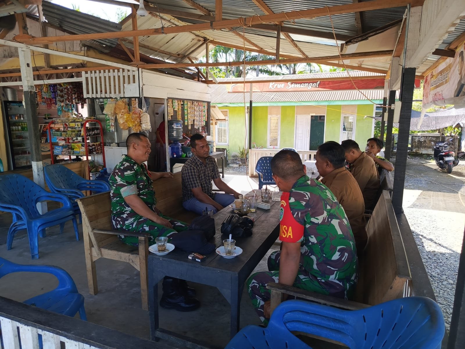 ACEH JAYA – Babinsa Posramil Pasie Raya Kodim 0114/Aceh Jaya, Sertu Syamsul dan Kopda Baihaqi, melaksanakan kegiatan komunikasi sosial (Komsos) dengan Geuchik dan aparatur Gampong Desa Tuwi Kareung, Kecamatan Pasie Raya, Kabupaten Aceh Jaya, Selasa (06/01/2026).