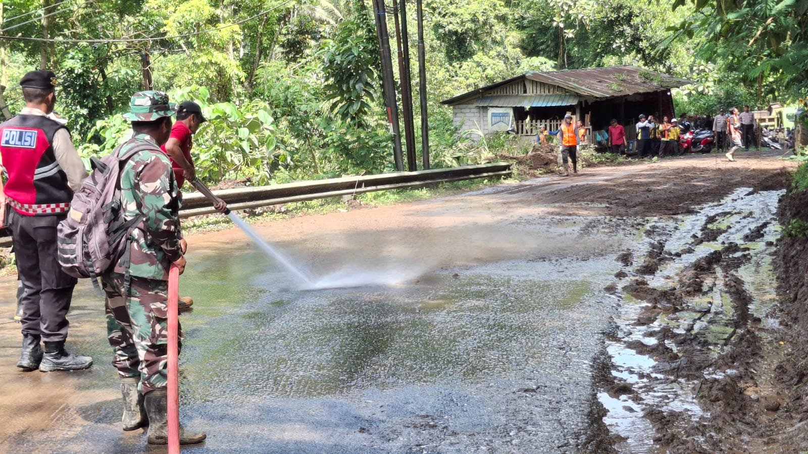 Dalam pelaksanaan pembersihan, dilakukan secara gotong royong dengan memanfaatkan alat berat dan manual, serta bantuan semprotan air untuk menghilangkan sisa lumpur. Berkat kerja sama yang solid, proses penanganan bencana tanah longsor dapat dituntaskan dengan cepat, memungkinkan arus lalu lintas di jalur Bangli–Tembuku kembali normal dan aman.
