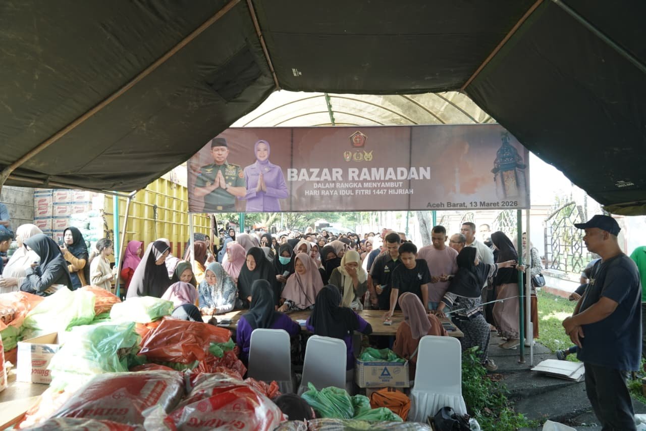 Meulaboh โ Dalam rangka membantu memenuhi kebutuhan masyarakat sekaligus meningkatkan kesejahteraan selama bulan suci Ramadhan, TNI menggelar Bazar Ramadhan Tahun 2026 secara serentak di seluruh wilayah Indonesia. Di wilayah Korem 012/Teuku Umar, kegiatan bazar tersebut dilaksanakan di satuan jajaran dengan melibatkan berbagai pihak, Jumat (13/3/2026). ๐