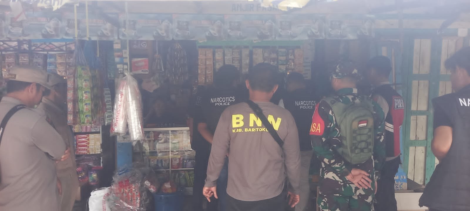 BARITO KUALA – Koramil 1005-09/Anjir Pasar bersama dengan Ketua Badan Narkotika Nasional (BNN) Kabupaten Batola, Polres Batola, Dinas Kesehatan (Dinkes) dan Satuan Polisi Pamong Praja (Satpol PP) melakukan operasi/razia toko penjual obat keras dan bahan berbahaya lainnya di sepanjang Jalan Trans Kalimantan, Kecamatan Anjir Pasar, Selasa, (19/11).