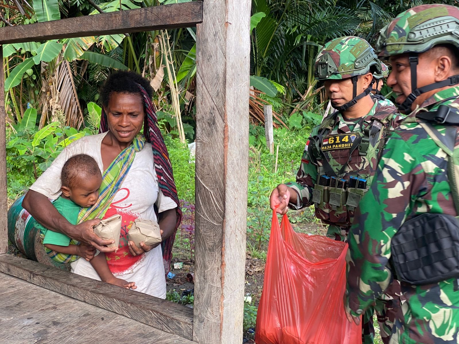 MEMBERAMO RAYA – Satgas Yonif 614/Raja Pandhita Pos Dabra berbagi makanan gratis kepada masyarakat Perbatasan Papua yang berada di Komplek Wamena Kampung Dabra, Distrik Memberamo Hulu, Kabupaten Memberamo Raya, Papua, Senin, (18/11). Pembagian makanan ini dilakukan sebagai bagian kepedulian Pos Dabra terhadap warga binaan yang membutuhkan. “Kegiatan berbagi makanan ini merupakan program satgas yonif 614/Raja Pandhita Pos Dabra dalam membantu kesulitan masyarakat yang ada disekelilingnya,” ucap Danpos Dabra Lettu Inf Heru W. Ia juga menyampaikan bahwa pembagian makanan ini dibagi kepada masyarakat yang membutuhkan. “Ada 100 bungkus makanan yang kami bagikan kepada warga sekitar binaan,” terangnya Dengan adanya kegiatan ini mendapat banyak respon positif dari masyarakat sekitar dan mereka menerima pemberian makanan yang kami berikan. “Semoga kedepannya kami bisa melakukan kegiatan berbagi seperti ini lagi,” pungkasnya. SATRIA TANGGUH BIJAKSANA (Y614).