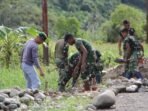 Tolitoli – Dalam rangka program TNI Manunggal Membangun Desa (TMMD) ke-127, personel dari Kodim 1305/Buol Tolitoli melanjutkan pembangunan talud dengan panjang 1030 meter di Dusun Ogomolobu, Desa Oyom, Kecamatan Lampasio,