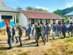 Anggota Satgas TMMD ke-126 Kodim 1412/Kolaka Latih Siswa SMA Ueesi Disiplin Lewat PBB