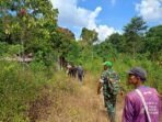 ACEH JAYA – Babinsa Koramil 03 Setia Bakti Kodim 0114/Aceh Jaya, Sertu Marwansyah, bersama tim BKSDA, Sdr. Khairul, serta aparat desa setempat, melakukan pengecekan terhadap seekor gajah yang sakit di