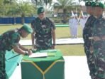 Aceh Besar – Komandan Korem 012/Teuku Umar, Kolonel Inf Windarto, S.Sos., M.M., memimpin langsung upacara Serah Terima Jabatan (Sertijab) Komandan Batalyon Infanteri 117/Ksatria Yudha di Lapangan Upacara Yonif 117/KY, Desa