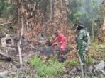 Kuala Pesisir – Prajurit Kodim 0116/Nara Posramil Kuala Pesisir bersama Aparat Gabungan dari BPBD dan relawan masyarakat berjibaku padamkan kebakaran hutan dan lahan (karhutla) di lahan kosong yang berlokasi di