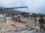 Nagan Raya – Prajurit TNI dari Kodim 0116/Nagan Raya bersama Yonif TP 856/SBS dan Satuan Zeni Kodam Iskandar Muda (Zidam IM) terus mempercepat pemasangan Jembatan Bailey di Kecamatan Beutong Ateuh
