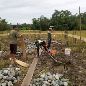 Kedekatan Nyata, Babinsa Posramil 06/Bubon, Serda Endi Bantu Warga Bangun Pondasi Rumah