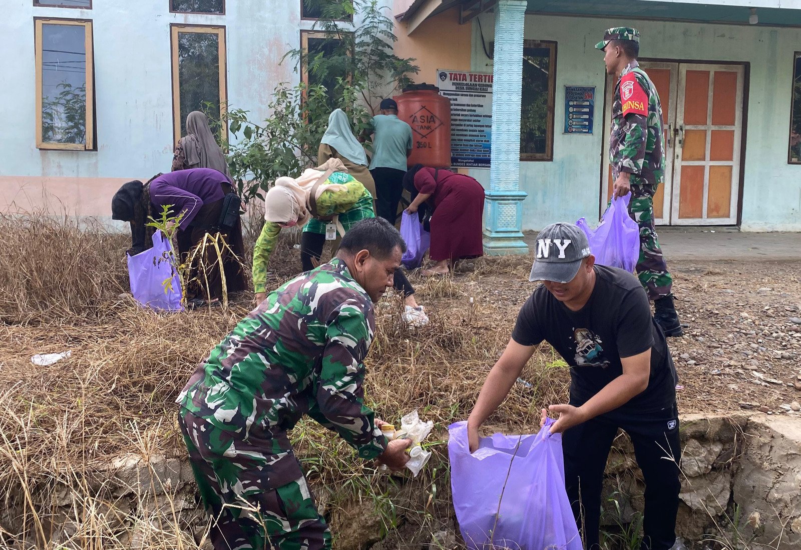 “Seperti saat ini sebagai upaya mencegah adanya virus penyakit kususnya demam berdarah, bersama lapisan masyarakat kita bersama sama bergotong royong lakukan pembersihan ditempat tempat yang memungkinkan dijadikan sarang nyamuk”, beber Sertu Suratno