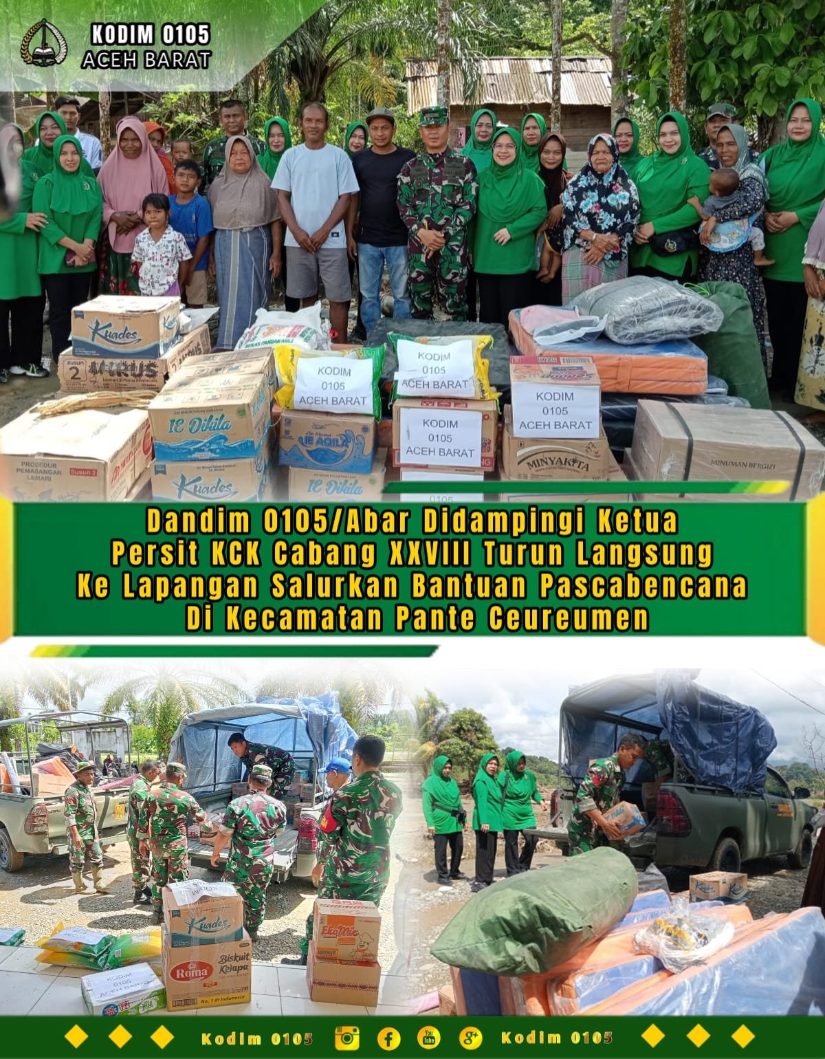 Dengan adanya kegiatan ini, Kodim 0105/Aceh Barat kembali menegaskan komitmennya untuk selalu hadir di tengah masyarakat, khususnya dalam situasi darurat dan pascabencana. Melalui sinergi antara TNI, Persit, pemerintah daerah, dan masyarakat, diharapkan proses pemulihan dapat berjalan dengan baik serta tercipta kembali kehidupan masyarakat yang aman, nyaman, dan sejahtera.(0105).